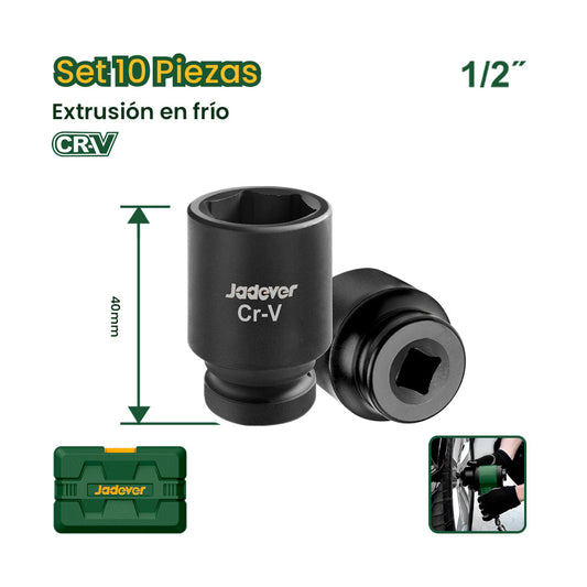 Set Juego de Dados de Impacto 1/2” 40mm 10...