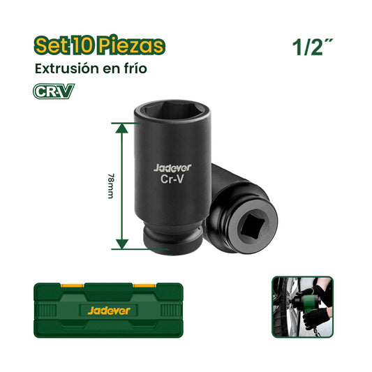 Set Juego de Dados de Impacto 1/2” 78mm 10...